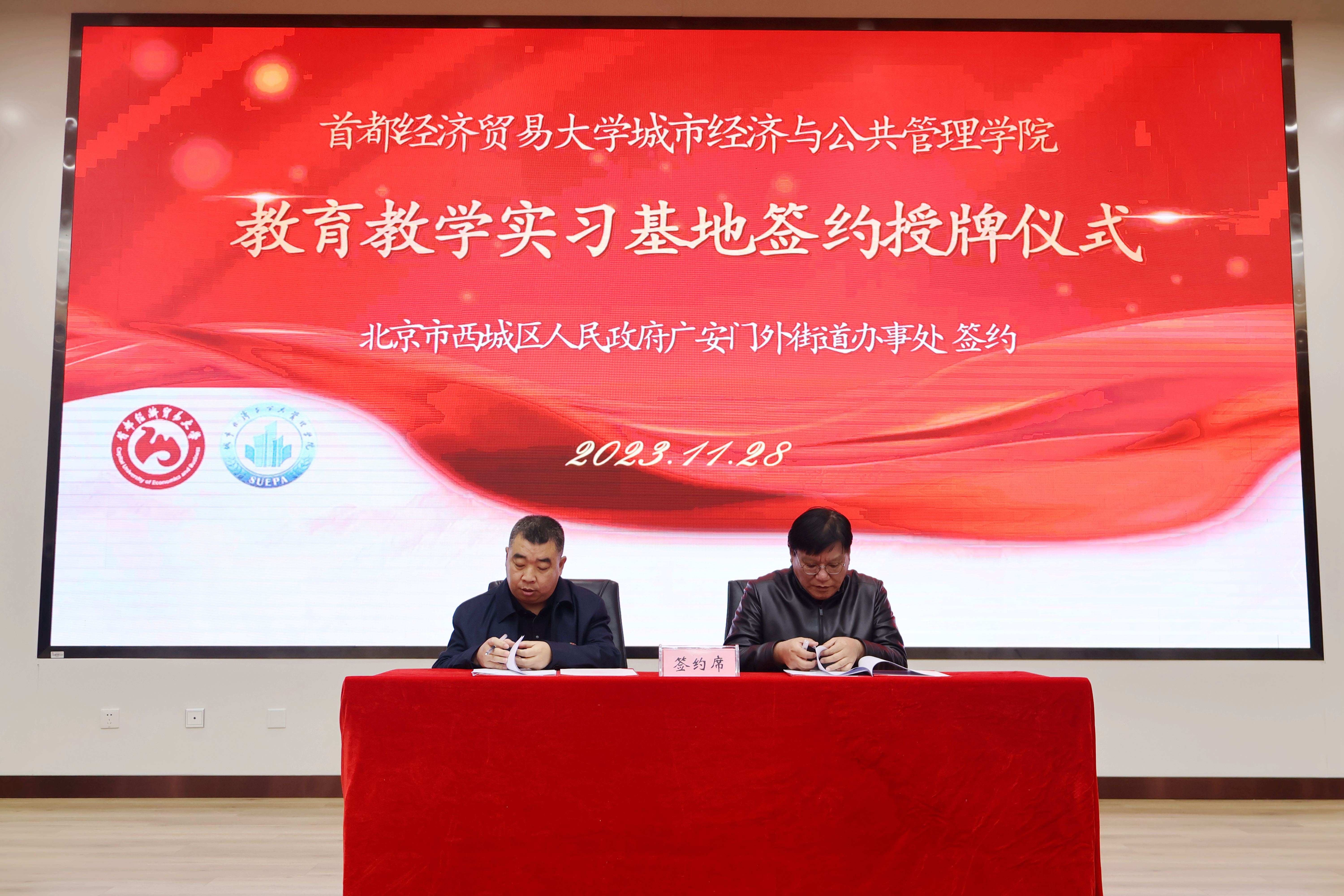 会上,学院与北京市西城区人民政府广安门外街道办事处、北京朝阳城市发展集团有限公司正式签约。