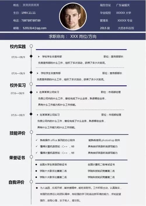 1. 一份好的简历在于内容充实、语言清楚,根据岗位,也要对信息做出取舍。HR浏览简历的时间有限,所以制作简历时将对应岗位要求的信息放在前,不必要的备注越少越好。文风简洁、重点清晰,不仅有助于你铺陈基础信息,也能体现出你干练的行事风格。