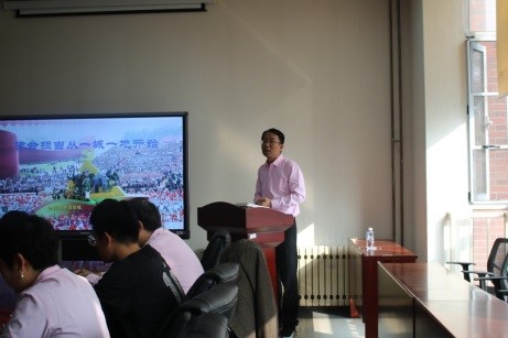 2019年10月23日下午,85PO 党委书记刘文东以“使命担当从一城一地开始”为题讲授专题党课。理论学习中心组成员各系系主任、党支部书记以及学院行政党支部全体成员参加活动。活动由院长张国山主持。