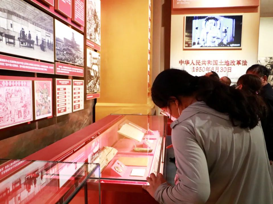 中国共产党历史展览馆是一座承载着百年大党峥嵘记忆、彰显新时代恢宏气象的红色殿堂,以“不忘初心、牢记使命”为主题,通过丰富的档案史料、文物,全方位、全景式地展现了中国共产党波澜壮阔的百年历程,反映了中国共产党团结带领中国人民铸就百年辉煌的不懈奋斗、不怕牺牲、理论探索、为民造福、自身建设的壮阔历程。学生党员参观了“建立中国共产党 夺取新民主主义革命伟大胜利”“成立中华人民共和国 进行社会主义革命和建设”“实行改革开放 开创和发展中国特色社会主义”“推进中国特色社会主义进入新时代 全面建成小康社会 开启全面建设社会主义现代化国家新征程”四部分展览。中国共产党第一次全国代表大会会址复原场景、革命根据地创建展板、开国大典影像、脱贫攻坚数据图表等一件件珍贵的实物、一篇篇翔实的档案资料、一幅幅泛黄的照片和一幕幕逼真的复原景观,学生党员在参观中深入了解史实细节,感受历史,畅想未来,感受中国共产党百年来艰苦卓绝、波澜壮阔的奋斗历程。