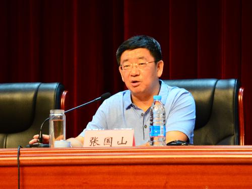 在奏唱国歌,介绍与会领导、老师之后,城市学院院长张国山致辞,他提出本科生应学习知识,硕士生应把握理论,博士生应运用方法,共同努力,一起进步。望新生要勤勉学习,不虚度光阴,将“靡不有初,鲜克有终”牢记于心,做任何事情善始善终,努力追求科学的真理,成为高质量的管理类专业人才。