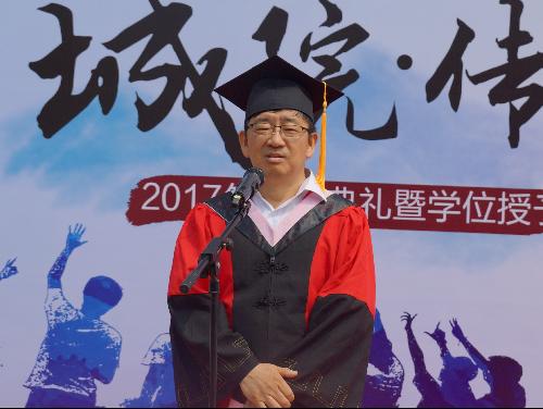 院长张国山亲切寄语2017届毕业生。他代表学院向获得博士和硕士学位的同学们表示祝贺。他表示,此次毕业典礼的主题是“传承”,这不仅意味着要将在校期间的经历和精神传递给学弟学妹,还要将在校学习到的知识与道理传递和延续到未来的工作和生活中,祝福毕业生在生活上美满幸福,带走母校的祝福。