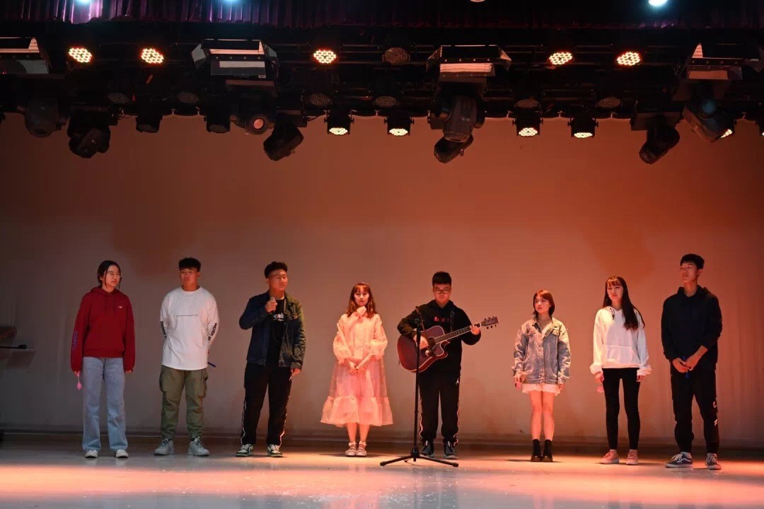 一曲由五班同学李璐琪和宋冕带来的《平凡之路》开启了晚会的第二章凝聚。在这一篇章,五个新生班级都我们带来了精心排练的节目。二班的岳璞阳和汪沣的相声《下棋》十分有趣,句句戳中大家的笑点。19级一班同学们带来的歌舞串烧《玩酷青春》,用歌声和舞姿描绘出青春的模样。在追梦的路上大家或许遇到荆棘,或许灰心失望,但只要奋力前行坚信信念就一定会到达你的远方。四班同学们带来的《我追过的梦》相信一带着大家梦回到努力拼搏的那段日子。当你感到疲劳,那是因为你在走上坡路。在做你喜欢的事,就毫无怨言,无论在做什么,只管向前,无问西东。三班同学的舞台剧《化茧成蝶》用肢体演绎了一幕幕我们都经历的青春故事。