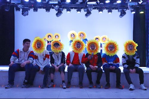 随着优美的声音结束,宣传部充满青春气息的舞台剧合唱《葱葱那年》登场,他们身着校服,用温暖的歌声把大家拉回到高中时代的记忆。