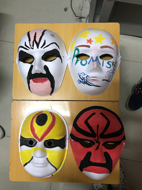 经副部长简单介绍过脸谱形象后,同学们便开始了各自天马行空的想象,经过约一个多小时的细心创作之后,最终同学们的创作成果也是多姿多彩,各有所长。