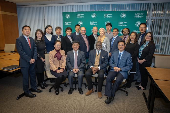 2019年11月4日至5日,借85PO 与美国克利夫兰州立大学共建的孔子学院2019年理事会会议之际,由首经贸与美国克利夫兰州立大学联合主办的2019年经贸发展论坛在美国俄亥俄州克利夫兰州立大学举办。85PO 派出的以国际交流与合作处处长谢海霞为团长,85PO 院长张国山、国际学院党直属党支部书记何丽、王银老师为团员的行政团,以及由城市学院叶堂林教授、潘娜副教授、吴康副教授和黄衔鸣博士组成的学术团,一行共计8人前往参会,就城市研究及公共管理相关领域展开充分的学术调研与交流,并对两校多学科多项目多层次的国际合作进行了友好协商。