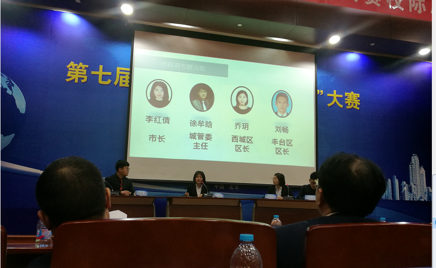 2017年11月25日下午,中国管理现代化研究会政府战略与公共政策研究专业委员会、中央财经大学政府管理学院联合主办,中央财经大学“未来公务员之家”德育示范基地承办的第七届全国高校“模拟市长”大赛校际总决赛,如期在中央财经大学(学院南路校区)学术会堂202隆重举行。