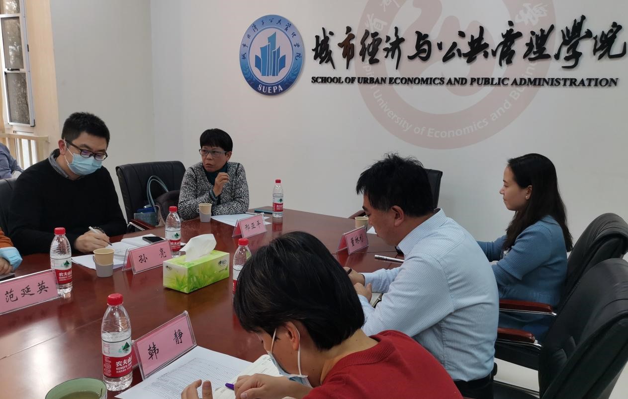 学院院长助理徐虹代表学院向检查组进行了本科教学工作汇报,重点从专业及培养概况、教学建设情况、教学审核评估准备、期中教学检查、问题和难点五个方面进行了阐述。从教学建设情况看,学院在培养方案上,通过多校研讨和教研项目支撑,形成了“政、经、法、城”的公共管理类专业学科基础课特色;在课堂管理上,通过与学工办相互配合实现了对因疫情影响上课学生的有效管理,通过学院、教务处两级备案实现了对老师授课形式的严格把控,并且建立了依托微信、线下课堂、腾讯会议、学习通形成的四位一体混合授课体系;在学业引领上,建立了院系两级、三层次的学生成长引领系统,包括新生学涯和专业认知引领、以“兴趣与创客”“灯塔计划”“谈土论房”为核心的学生专业成长引领、学生学术及创业成长引领系统;在实习实践上,学院重点思考在防疫形势下如何创新线上实习方式,例如推动实习基地接收学生线上参与单位实际工作,依托教育部产学合作协同育人项目开展虚拟仿真线上实习,邀请职场人士开设职场案例课等。学院还长期坚持建设贵州省麻江县河坝村青年实践实习基地,至今已有140名师生奔赴河坝开展多样化实践活动,2022年荣获首都高校师生服务“乡村振兴”行动计划二等奖。从教学审核评估准备情况看,学院重点从规范化和补短板两方面入手,加强了试卷、实习报告、毕业论文的规范性,进一步推动了教材建设和实习基地使用率。从期中教学检查情况看,学院推动期中教学检查转变为学期常态化检查,在青年教师观摩听课、学生座谈会有效性方面形成了特色亮点。