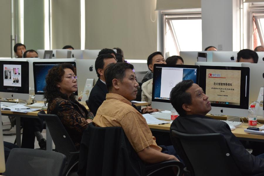 北京市西站地区管理委员会二十多名处级领导干部被编成四个小组,分角色扮演,并模拟公共危机现场进行了讨论。来自中国浦东干部学院的公共危机管理专家谭文柱现场点评;西站管委会局级领导干部在观摩室现场观摩。