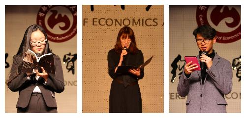 七位同学进行读书分享期间,穿插了有奖问答和评委评分公布。接下来是线上投票环节。现场观众的可以通过学院的“经城所至”微信公众平台为自己心怡的选手进行投票。投票期间主办方邀请张帆老师做了精彩的读书经验分享。她用精辟的语言将读书的方法概括为广、泛。广,即除专业书籍外多读多涉猎各种类型书籍。泛,即不求甚解,一读再读常读常新。最后她向同学们提了出读书目标与期望,即,经天纬地、经世济民、中西合璧、刚柔并济。