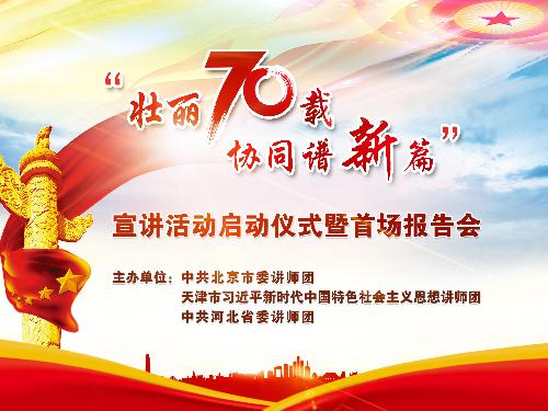 2019年6月28日,北京市委讲师团、天津市习近平新时代中国特色社会主义思想讲师团、河北省委讲师团联合组织的“壮丽七十载 协同谱新篇”宣讲活动河北廊坊专场报告会,在廊坊市举行。此次宣讲活动是在全国人民喜迎新中国成立七十周年、京津冀协同发展战略实施五周年之际,京津冀三地讲师团坚持协同发展理念,积极探索三地社科专家同台联合宣讲工作模式的首次尝试。