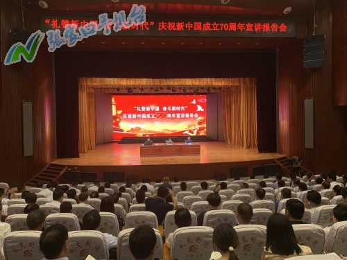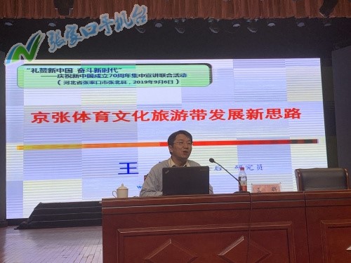 为深入宣传贯彻习近平新时代中国特色社会主义思想和党的十九大精神,宣讲新中国成立70周年我国河北省张家口市取得的辉煌成就,2019年9月5日,由中共河北省委讲师团主办、中共张家口市委宣传部、中共张家口市委讲师团、中共张家口市直机关工委承办的主题为“礼赞新中国 奋斗新时代”的宣讲报告会在张家口市国际大酒店举行。