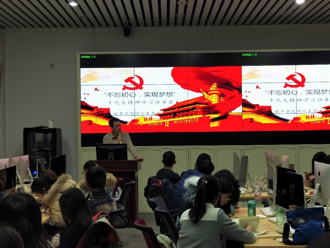 2017年12月4日星期一18:30,85PO 研究生学生党支部在城市学院应急实验室112室为深入学习贯彻党的十九大精神,开展“不忘初心,实现梦想”的党的十九大精神学习交流会。参与交流分享活动的有各班党员、预备党员及积极分子。共有10名入党积极分子及发展对象对十九大精神的理解或自己关注的某些具体方面进行阐述理解分享。交流会由研究生党支部书记陆辉老师主持。 首先,李帅、曹宁泽、刘丹丹几位入党积极分子对十九大报告进行了全面而深入的解读,中国共产党第十九次全国代表大会,是一次具有...