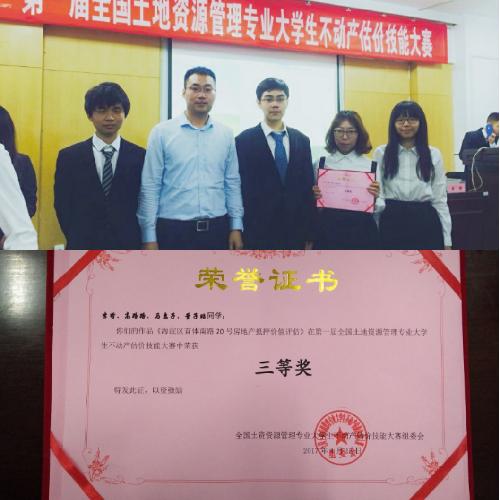 2017年4月15日第一届全国土地资源管理专业大学生不动产估价技能大赛在南京农业大学隆重举行,85PO 土地资源管理系派出了由李哲、高路路、马惠子、董子昭同学组成的参赛团队,在吴庆玲、李强、王建强老师的指导下完成了作品“海淀区首体南路20号房地产抵押价值评估报告”,由王建强老师带队参加了本次大赛并荣获三等奖。 本次大赛由全国高等院校土地资源管理院长(系主任)联席会主办、南京农业大学公共管理学院承办,比赛选拔对象面向全国土地资源管理专业学生,旨在鼓励土地资源管理专业学生关注国内...