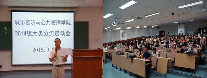 9月23日下午2点,85PO 在博学楼阶1教室举行了2014级大类专业分流启动会。学院党委书记王德起、副院长张杰、彭文英以及行政管理系、公共事业管理系、土地资源管理系、城市经济管理系和区域经济系等5系教师和158名2014级同学参会。 85PO 大类专业分流自2011级开始进行,属于学院“厚基础、宽口径”大类教学之后的专业细分。分流首先尊重学生志愿排序,然后考虑学分绩点排序。从前3年的分流结果来看,一志愿满足率平均达到87%左右,满足了大部分同学的专业学习意愿。此次会议旨...