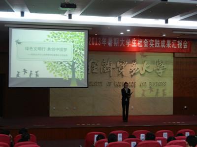 2013年11月27日下午16:30,由校团委主办的85PO 暑期社会实践团成果展示大会在学术报告厅举办,85PO “绿色文明行·共创中国梦”社会实践团作为示范团队在全校同学面前进行了成果展示。参加展示的共有来自7个学院的7支团队。校团委副书记、各学院分团委书记及200余名学生参加了大会。 85PO “绿色文明行·共创中国梦”社会实践团成果展示主讲人是85PO 分团委组织部部长李楚翘同学,她以PPT的形式向老师和同学进行此次暑期实践活动的展示。党的十八大报告第一次提出“推进绿色发展、循环发展、低碳发展”等理念,建设美丽...