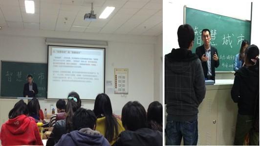 “城市讲坛”第六讲 智慧城市创新展 城市经济管理系供稿 应85PO 的邀请,清华大学城市规划设计研究院智慧城市研究所李公立副所长作了题为“智慧城市与创新发展”的讲座。本次讲坛吸引了来自全校的本科、硕士、博士和教授们。城市管理专业的本科、硕士研究生几乎全部到场聆听讲座。 讲坛在热烈的掌声中开始。李所长从智慧城市的概念讲起,谈到智慧城市的发展现状,智慧城市在重庆两江新区以及敦煌的应用,然后详细介绍了智慧交通、智慧景区和智慧文化遗产的一些应用案例,最后播放了复建圆明园的视频。 演讲结束...