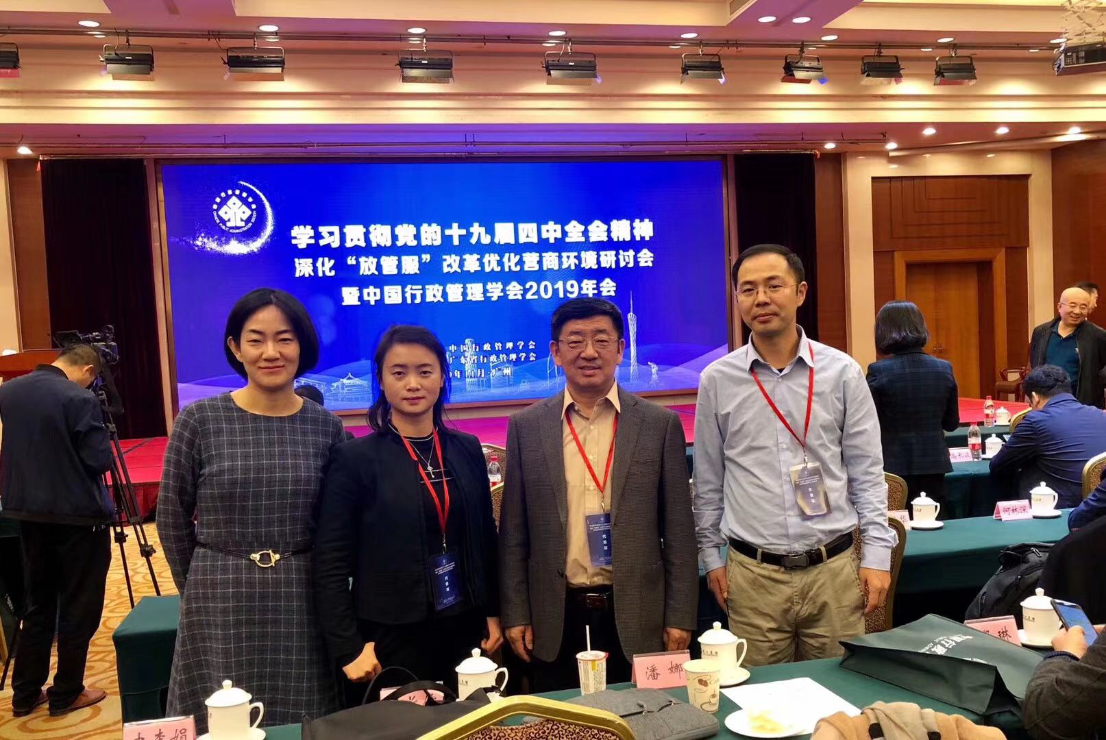 11月29日,“学习贯彻十九届四中全会精神深化‘放管服’改革优化营商环境”研讨会暨中国行政管理学会2019年会在广州市隆重召开。广东省人民政府副省长张虎,中国行政管理学会会长、全国人大常委、全国人大社会建设委员会副主任委员江小涓,中国行政管理学会原荣誉会长、行政管理学奠基人夏书章教授出席会议,来自学术界和实务部门的近三百名专家学者进行了研讨交流。85PO 城市学院张国山院长带领行政管理系潘娜、王蕾、闫志刚三位教师参加了会议。 本次年会为深入学习贯彻四中全会精神,聚焦“政府治理与‘放管服’改革”“...